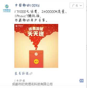 这个项目是欧克博讯科技去年帮西藏移动,在11月份投放的朋友圈广告。