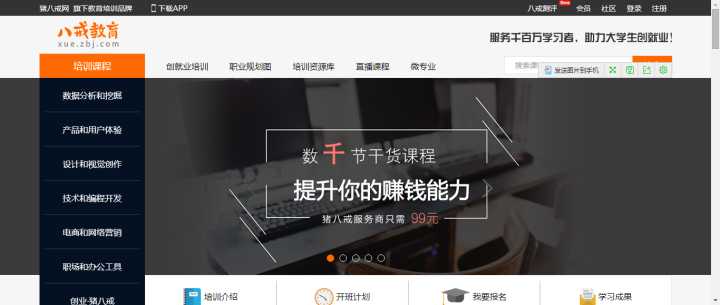 2,八戒教育——在创意设计、产品技术、营销推广等领域提供技能测评、专业认证、学习提升、实战演练等有用、有效、有创意的一体职业技能学习解决方案。