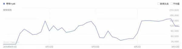 从百度指数可以看出,因为2016年“一起兄弟”广告的投放,搜索关键词“Yeti野帝”最高达到148,954!相比上线前7月平均值,增加1000%。”
