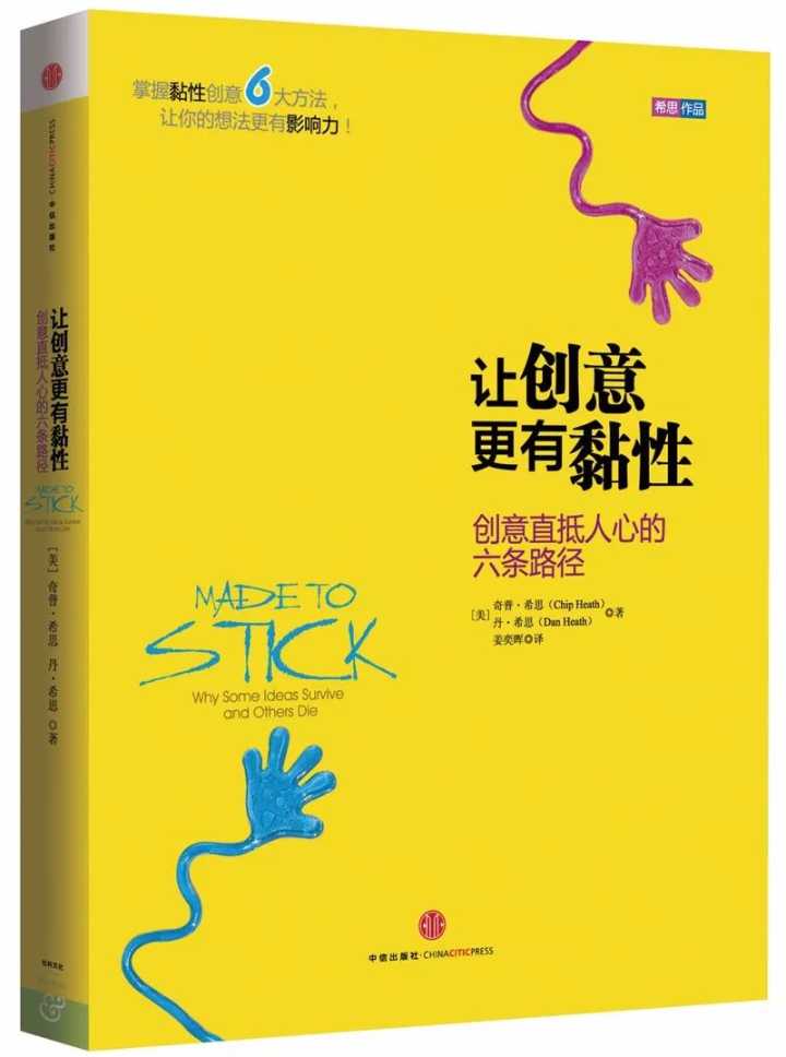 让创意更有粘性:本书的核心问题:什么样的观点或创意具有强有力的黏性,能被他人牢牢记住?国际知名行为心理学家希思兄弟根据大量的社会心理学研究案例,揭示了让创意或观点具有黏性的六条路径——简单、意外、具体、可信、情感和故事。一本系统讲解创意的书籍,或许能帮你想到好的创意。