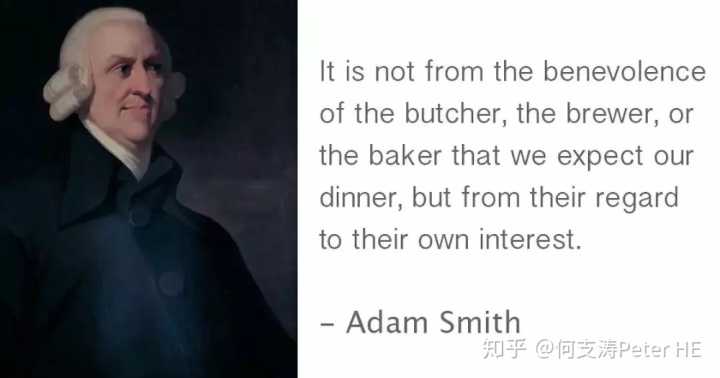 “人类几乎随时随地都需要同胞的协助,想要仅仅依赖他人的恩惠,那是一定不行的。他如果能够刺激他们的利己心,使有利于他,并告诉他们,给他作事,是对他们自己有利的,他要达到目的就容易多了。………. 我们每天所需的食料和饮料,不是出自屠户、酿酒家或烙面师的恩惠,而是出于他们自利的打算。我们不说唤起他们利他心的话,而说唤起他们利己心的话。我们不说自己有需要,而说对他们有利。”