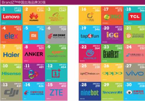 成功出海的中国品牌又是另一个角度下面看看2017年初某国际统计机构公布的成功出海的中国品牌100强