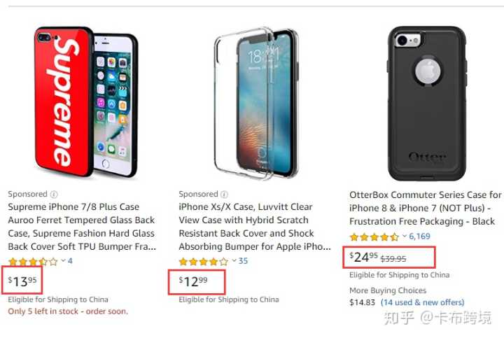 我们来看一下,这个是我在亚马逊上搜索的手机壳,单价都是在十几美金,有个价格比较高的,甚至达到了24美金,