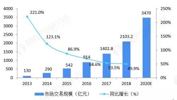 目前我国生鲜行业正在不断发展当中。据有关机构统计,以 2013 年我国生鲜行业交易规模 130 亿元为基数,在短短四年时间里,2017 年我国生鲜行业交易额就突破千亿(1402.8 亿元),2018 年交易规模达到 2103.2 亿元,相比 2013 年增长了 1617%。而且预估计,2020 年生鲜行业交易总额有望达到 3470 亿元。