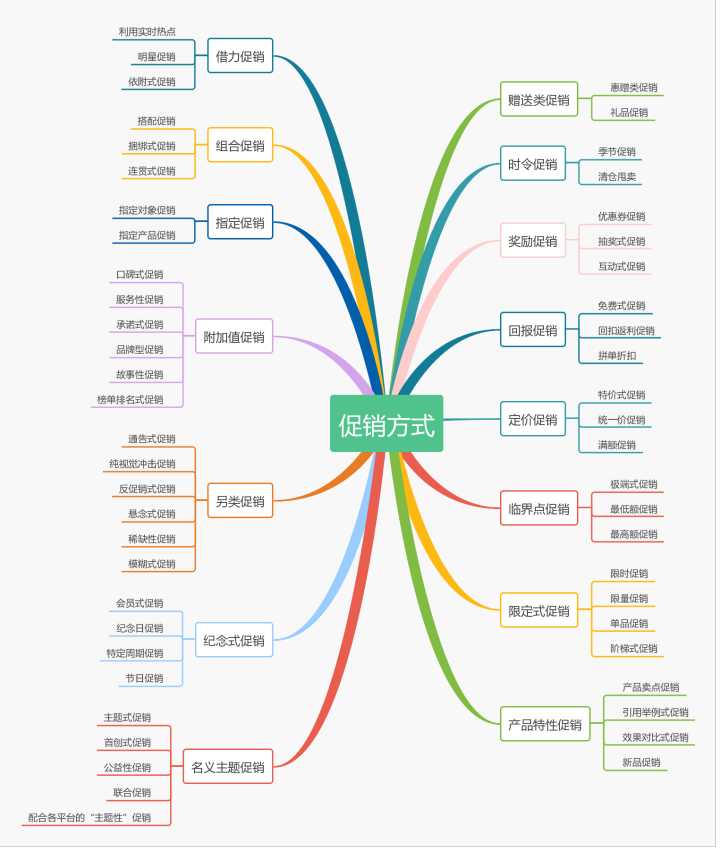 电商促销的方式有很多种,赠送类促销、时令类促销、奖励促销、回报促销、定价促销、临界点促销、限定式促销、产品特性促销、借力促销、组合促销等多种方式,可以根据不同的目的、时间节点、产品特征展开相应的促销活动。