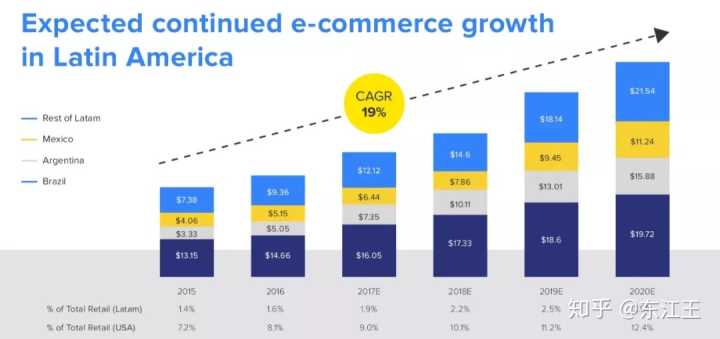 跨境电商的蓝海——拉美市场近6亿人口,电商消费目前仅占比6%,并以年均20%的增速发展!