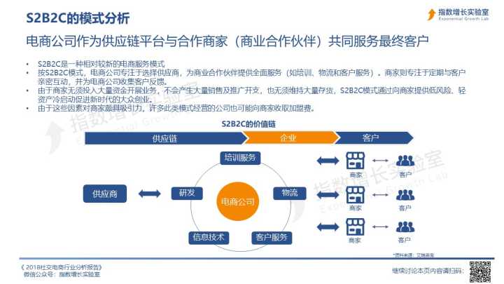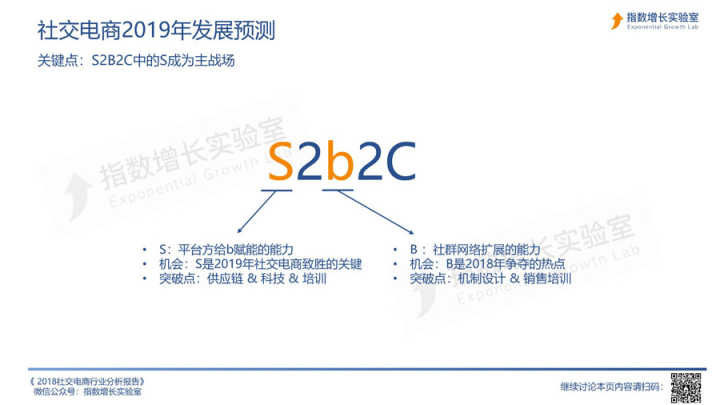 18. 由于S2b2C模式通过资源共享提高了整体运营效率,且商品品类的延展性强,有机会成长出头部电商企业。对S2b2C类社交电商来说,一方面通过深化供应链构筑防守壁垒,另一方面增强对小b的赋能,切实提升小b的影响力以及服务C端的能力,是发展壮大的关键。另外,也有一些S2b2C类社交电商在积累一定用户基础和品牌效应后,同时面向C端服务,与小b形成直接竞争关系,此时小b更多是传统模式下导流的角色,个性化服务的积极性和主动性将受到影响。
