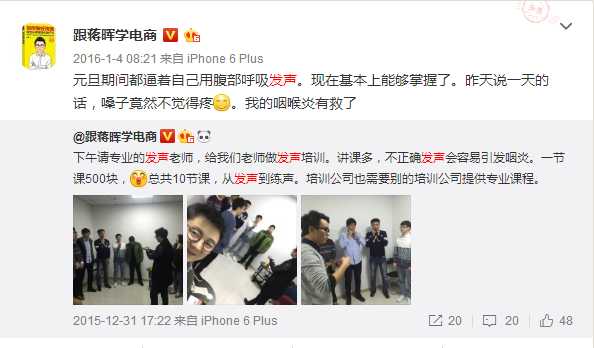 下图是公司在前年年底请专业的发声老师,来教我们老师们怎么正确发声,效果非常明显。我自己以前因为经常长时间讲课,导致现在有非常严重的咽喉炎,每年会复发几次,很痛苦的。