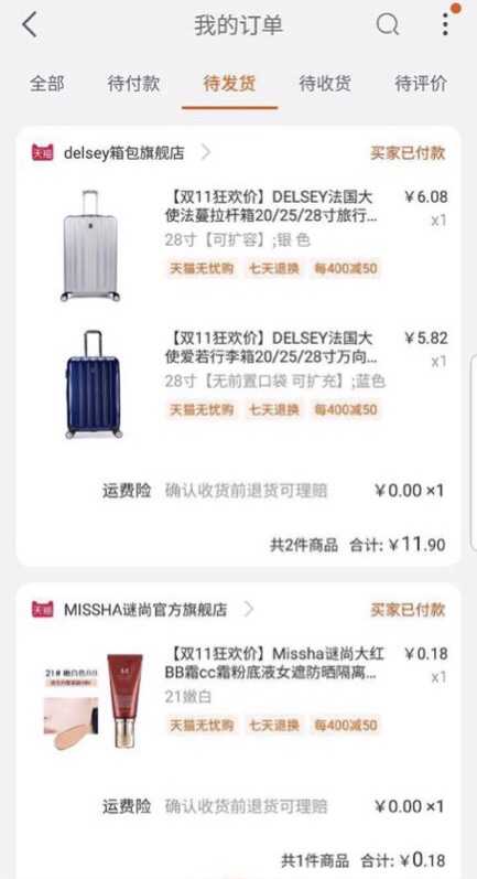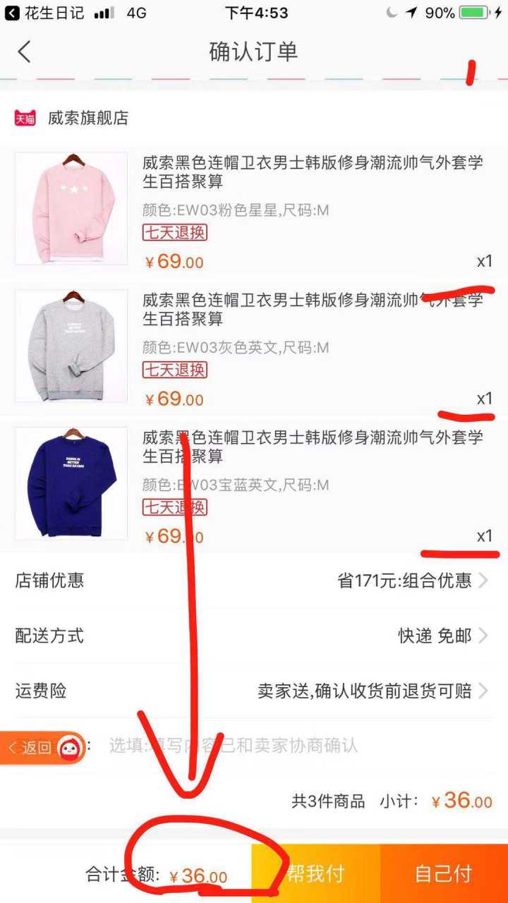 然后是我专门撸一分钱的小号订单图