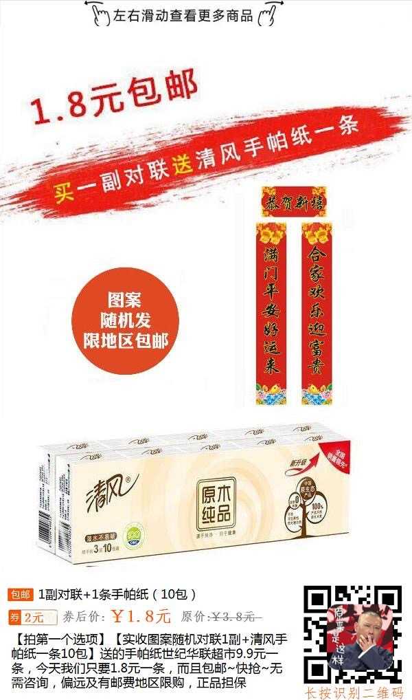 是一个对联链接,1.8拍下,发纸巾给你,好评,商家完成刷单,重点是