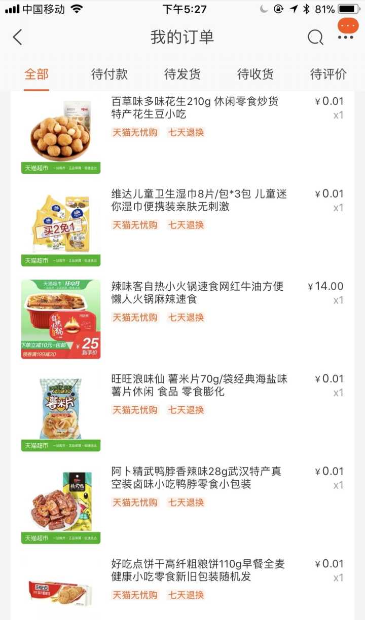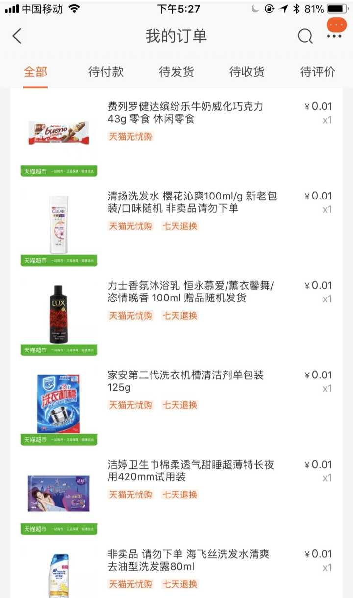 这几天天猫0.01抢趋势新品,全世界都都知道,大部分人都在在中奖,就是没有我,例行晒图