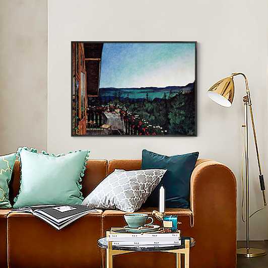 这颜色极其舒适,湖面波光表现的很真实。很搭配中式风家居。