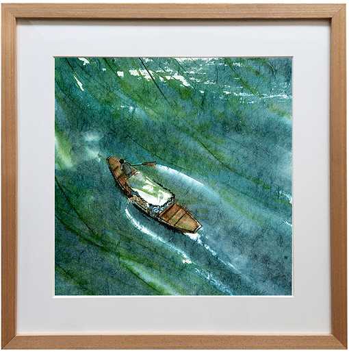 有一点是他的画大多喜欢留白,不会全副装框,但框型会比其他家粗。