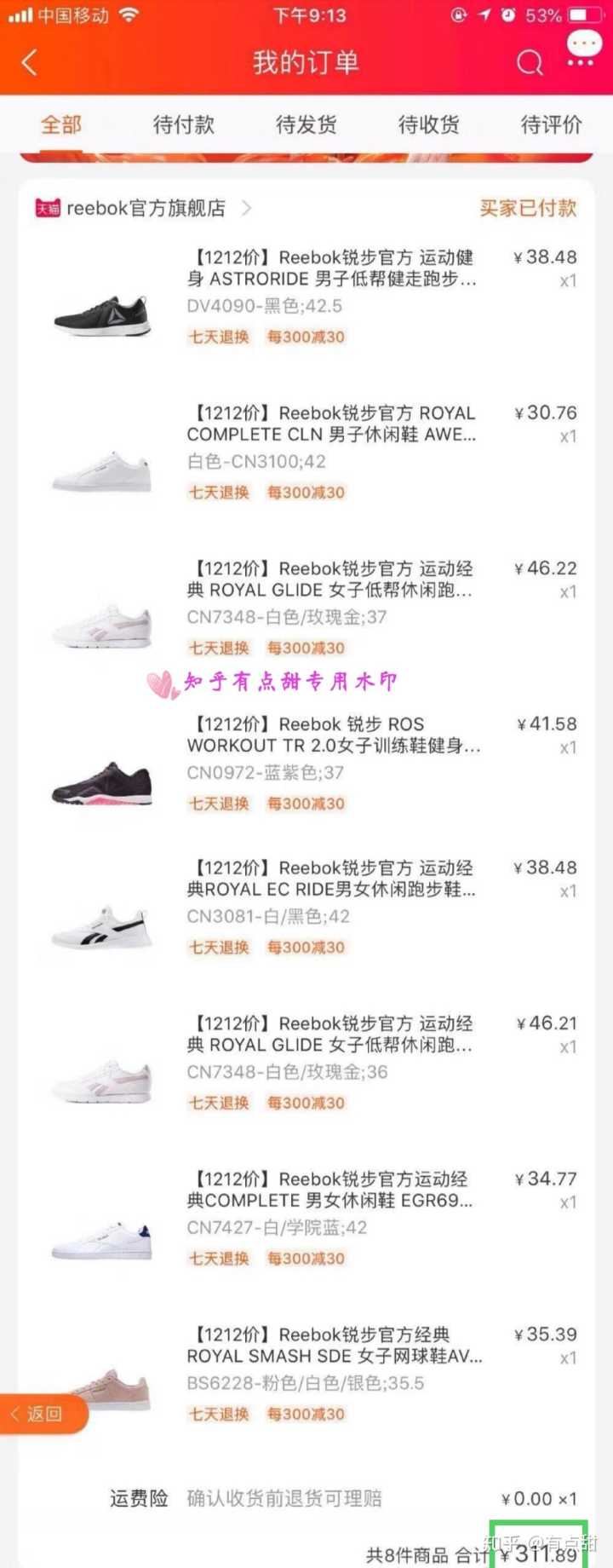 2.300多块钱买了8双锐步,是不是很划算,正值双十二,可以说很美滋滋~
