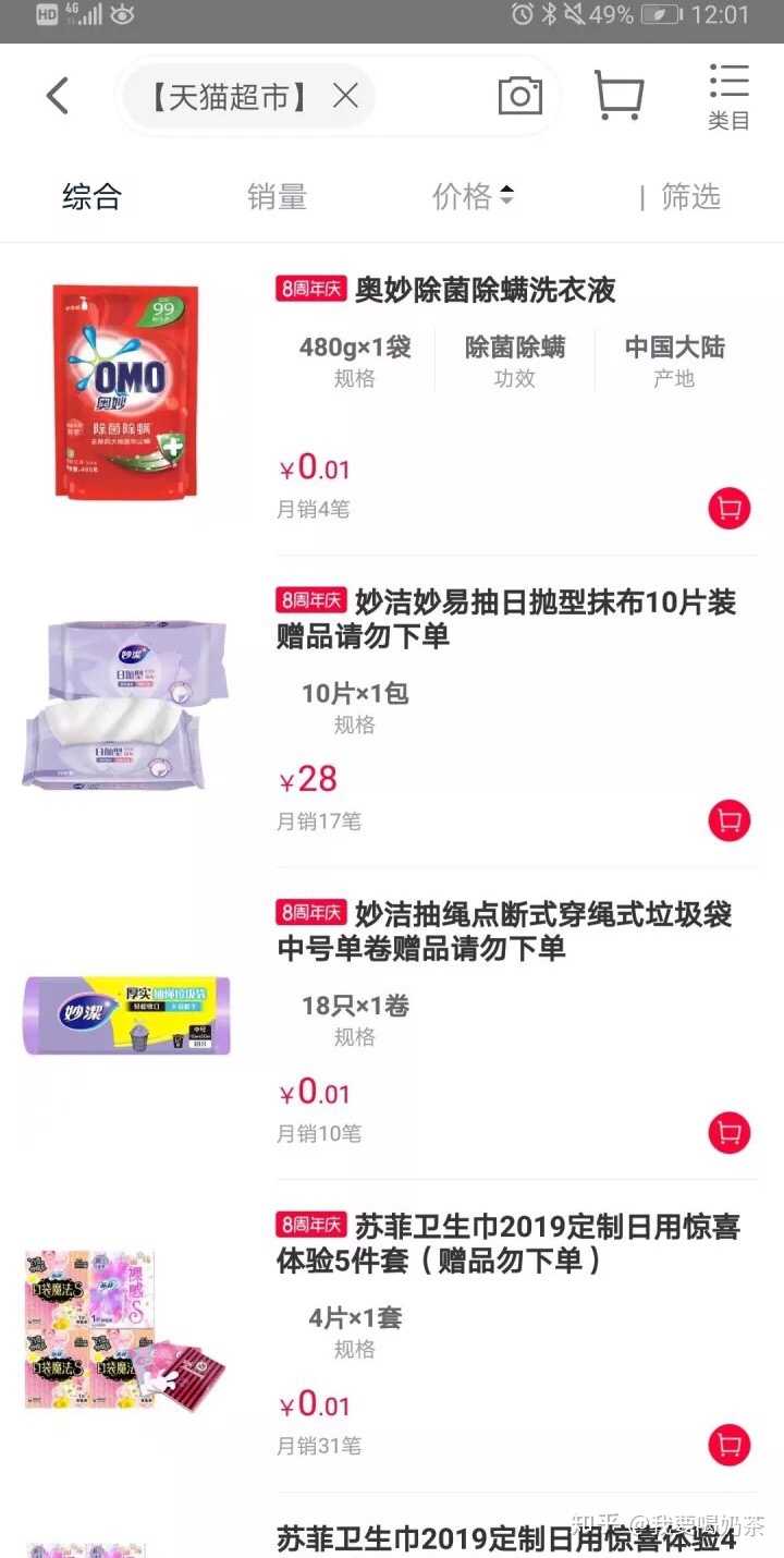 那进入正题说说怎么才能在天猫超市买到一分钱的东西。