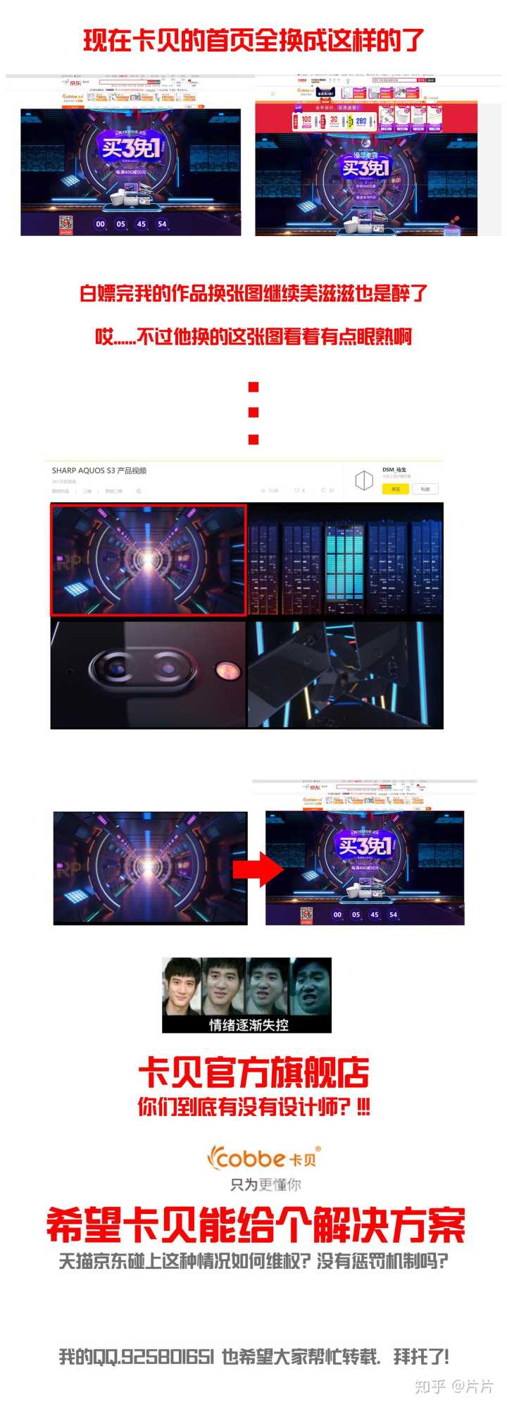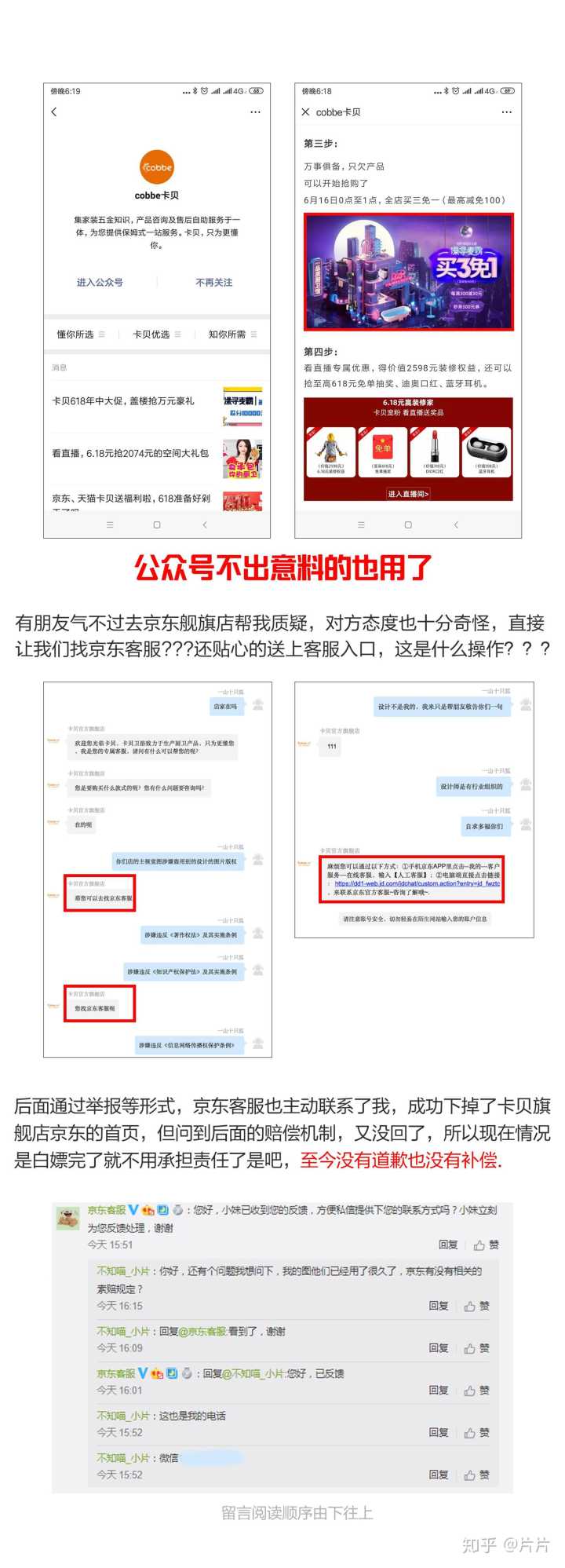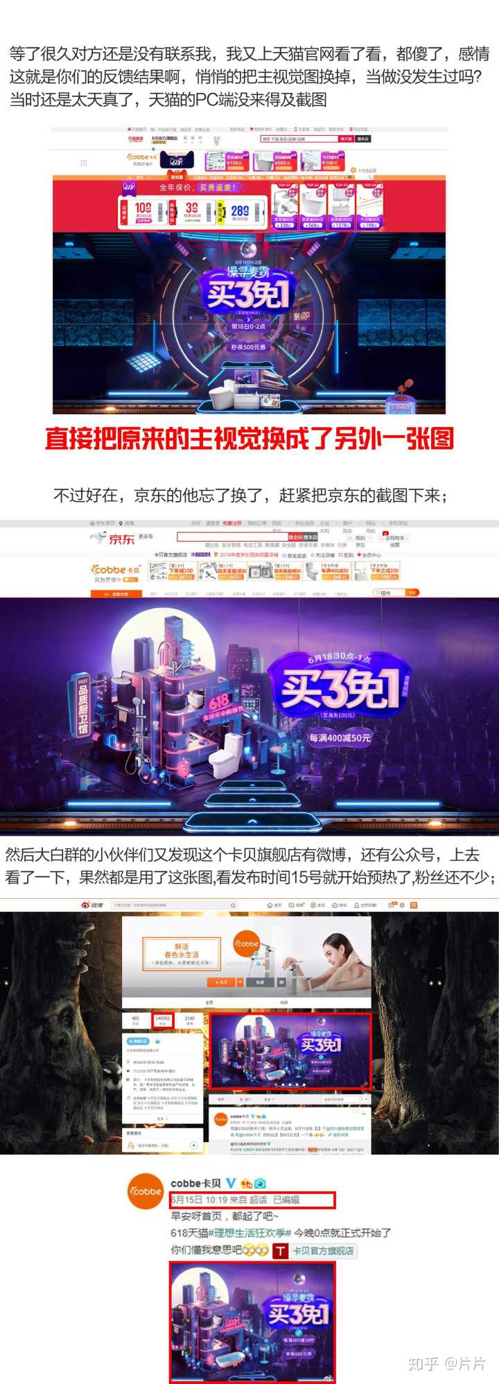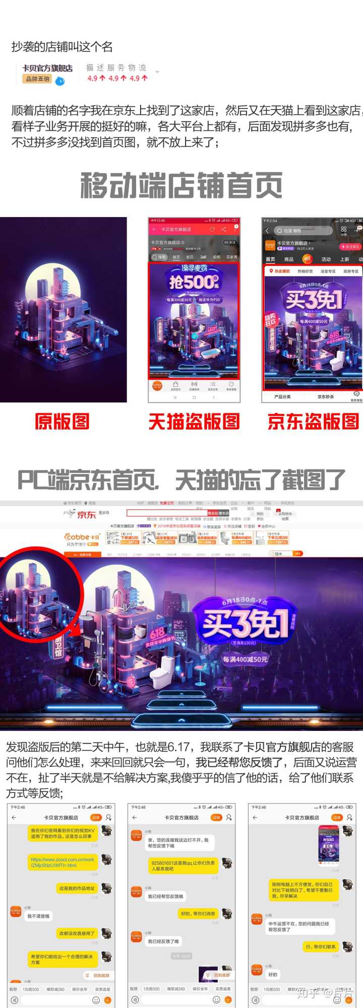 卡贝官方舰旗店,直接盗我的图当618主视觉,改都不改就上线天猫京东,6.17我发现后联系官方客服要说法,结果客服一边忽悠我等着,一边马上给网站光速换图,连个道歉都没有。这么大的品牌店连设计师都请不起吗?打开天猫京东都是在用我的图,什么情况??