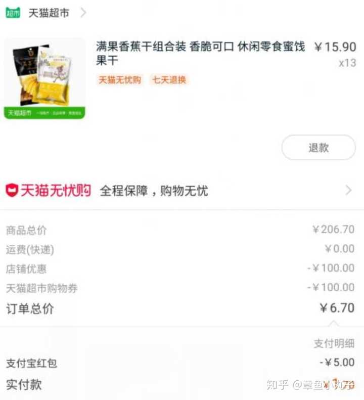把阿迪达斯有优惠券的商品和自己心仪的零食放在同一个购物车内,这时鞋子的优惠券是满300减30,因为单鞋子不足300元无法使用优惠券,加上我们的零食就够了,所以这么一波下来我们省了30块,购买完成后点击退款鞋子,嘿嘿,七天无理由退货在这里是个好东西~