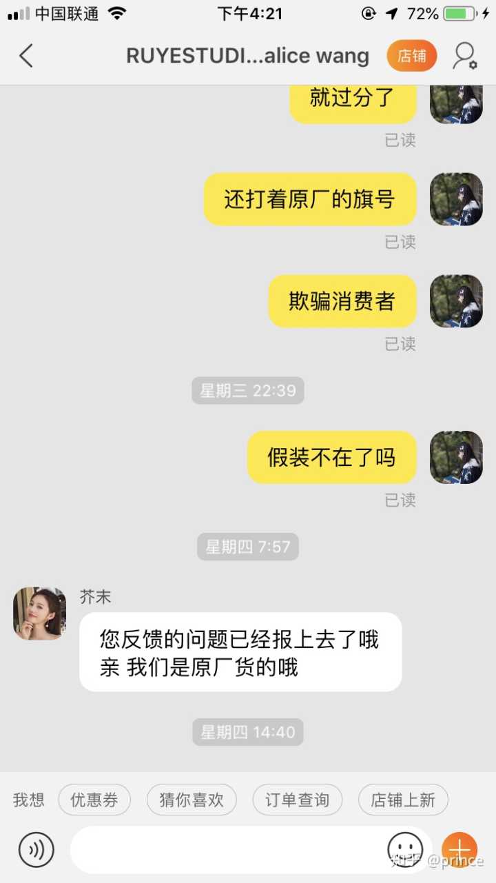 客服一直坚称自己是原厂货,是我污蔑她们,并且只能以不喜欢的理由申请退款。