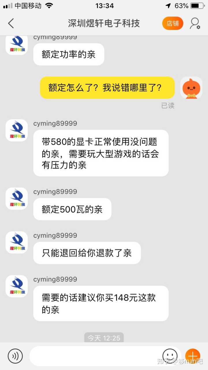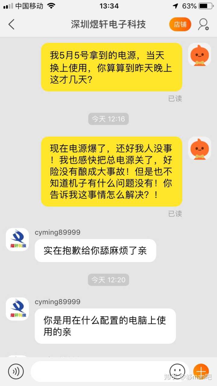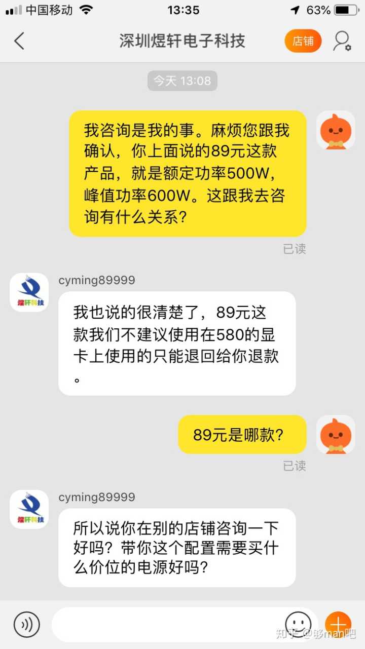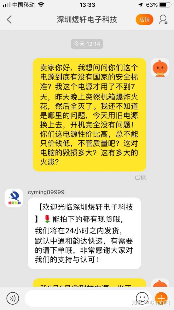 刚刚发生的事情,非常非常生气,现在摆上来给大家评判一下,所有的截图绝对绝对没有删除过一句对话,请大家给我评判!当时买的是下面这个电源