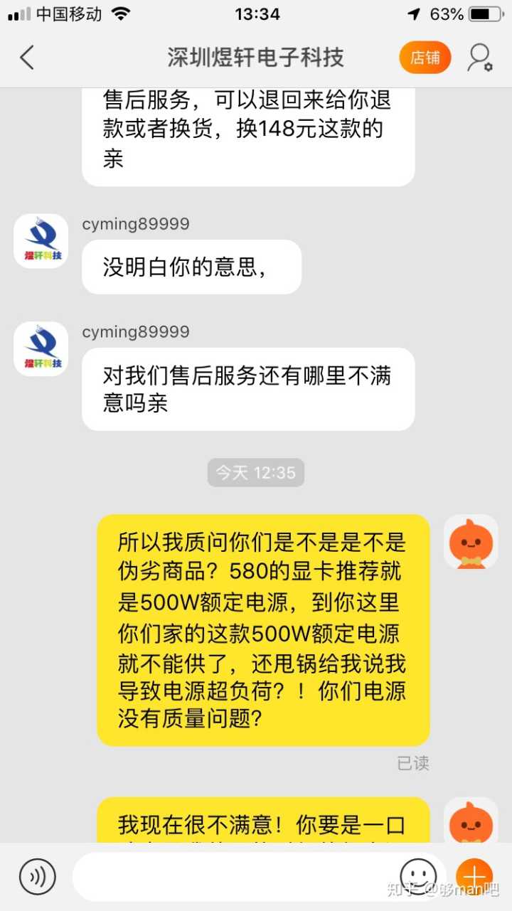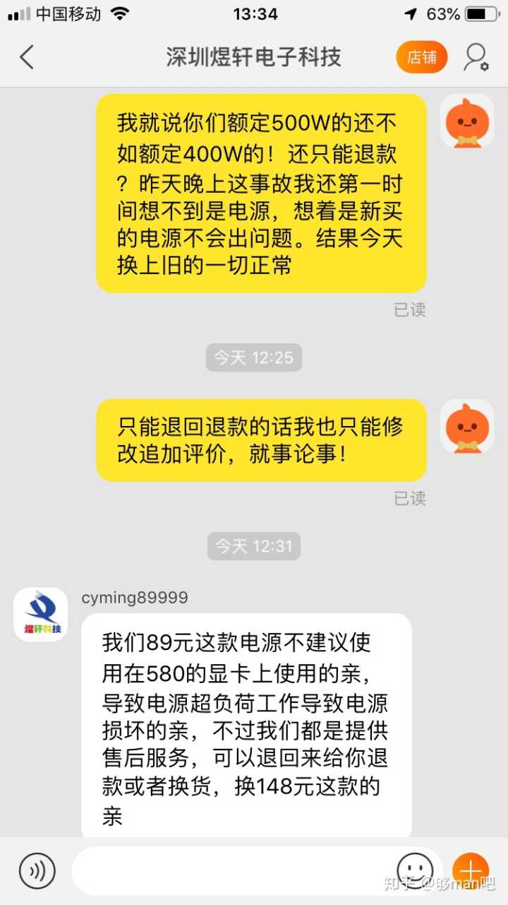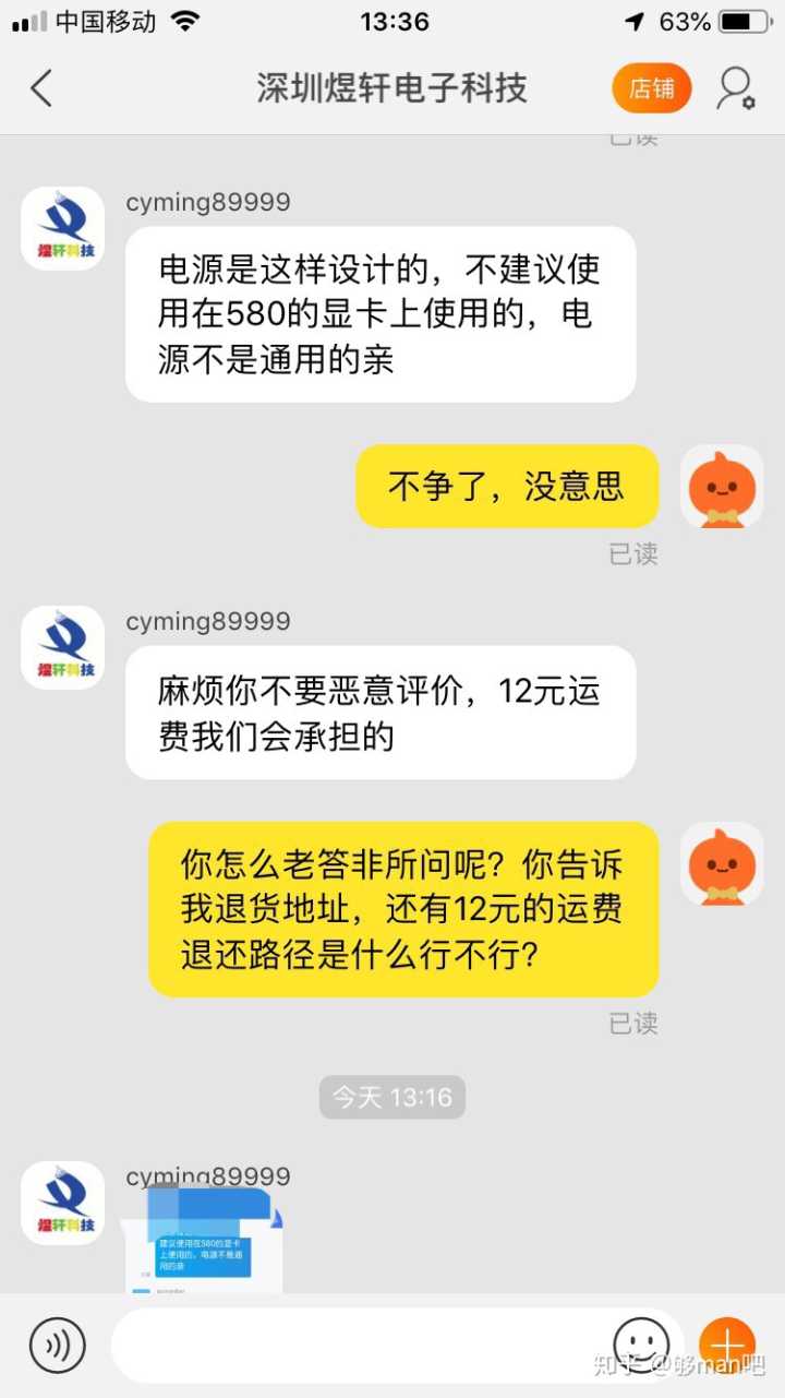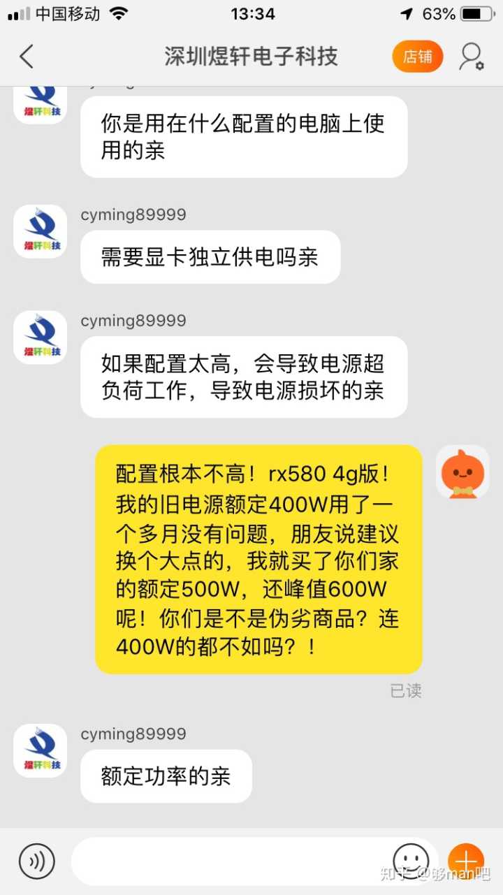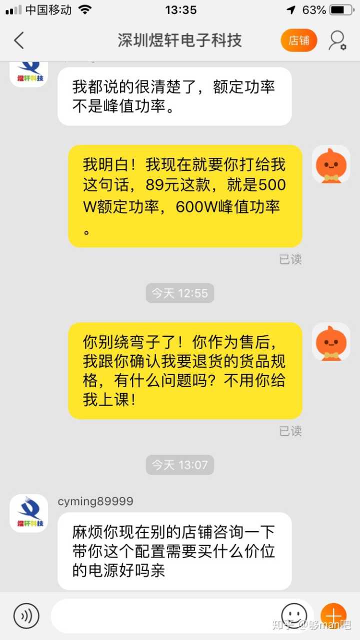 刚刚发生的事情,非常非常生气,现在摆上来给大家评判一下,所有的截图绝对绝对没有删除过一句对话,请大家给我评判!当时买的是下面这个电源