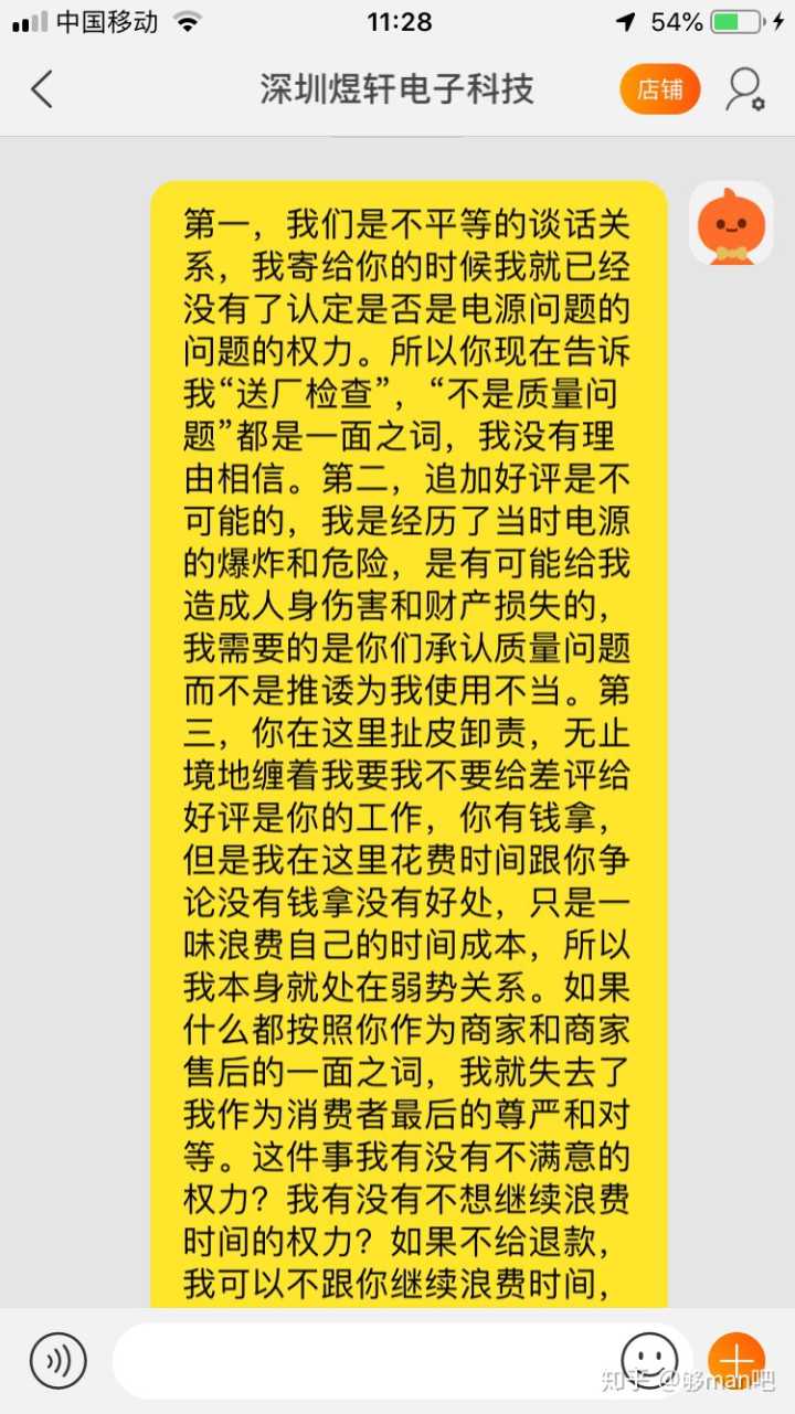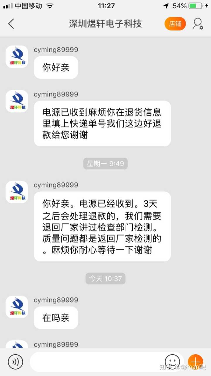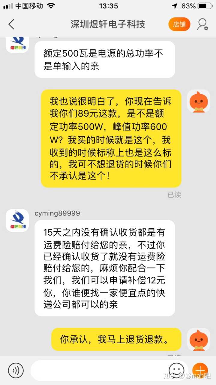 下面没理他,电源已经邮寄回去了,下面是他们接到后的对话。