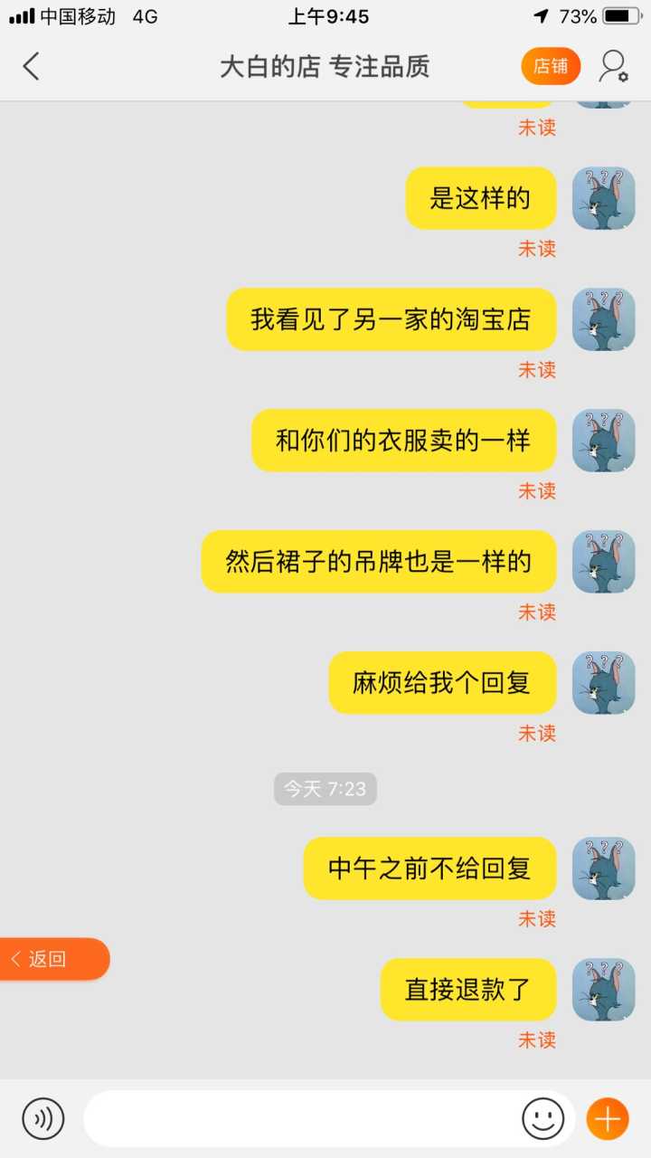 就这样,我还省略了很多我用来催他们回我的问号,别和我就不多说了,这家店是真的垃圾!!!