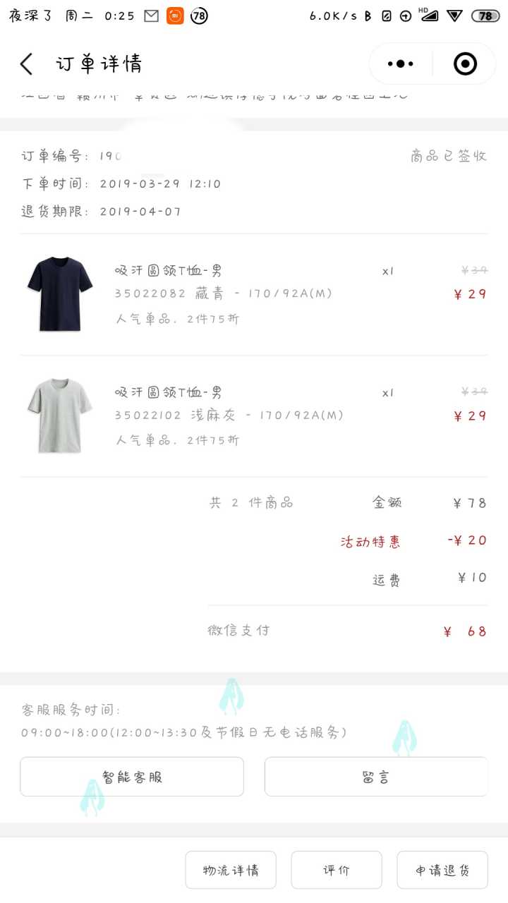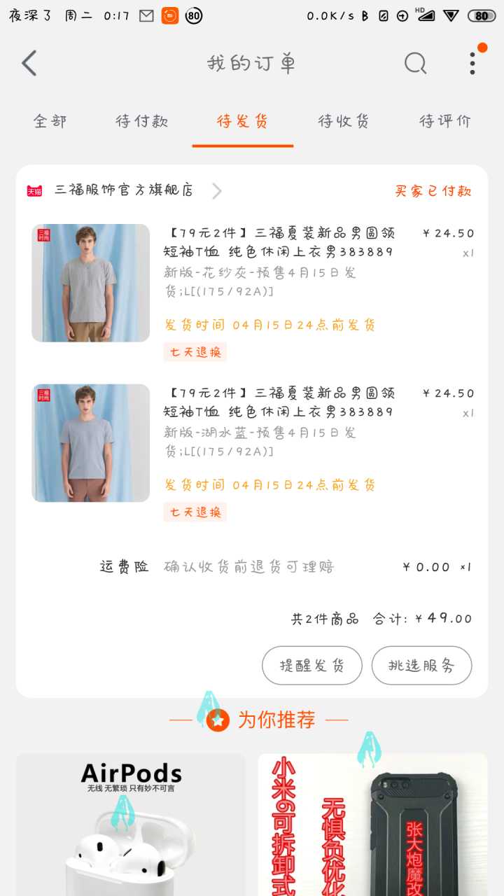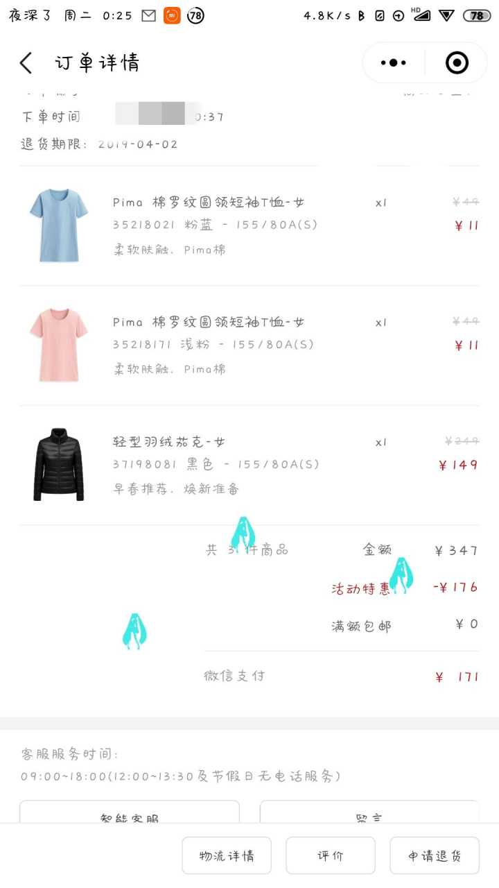 再贴一张,这是给我爸买的(你们不要嫌弃我给我爸买太便宜的,毕竟是夏天的衣服,而且活动价,我还没开始工作呢,等我赚钱了再给我爸妈买好的我觉得没必要那么贵(* ̄3 ̄)╭♡❀小花花砸你),这个原价是49一件的,今天刚刚弄了好几张10元红包想准备取消订单用上,发现恢复原价了,还好看了一下(◔◡◔)。③、微信小程序-lativ诚衣这个,我也没穿过他们家的,但是我给我妈妈买过T恤和羽绒服,还有给我爸爸买过T恤。老规矩上图