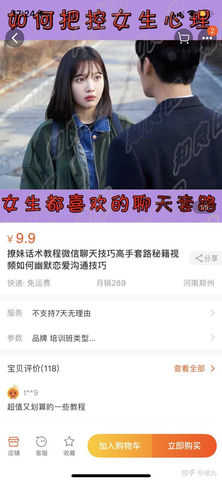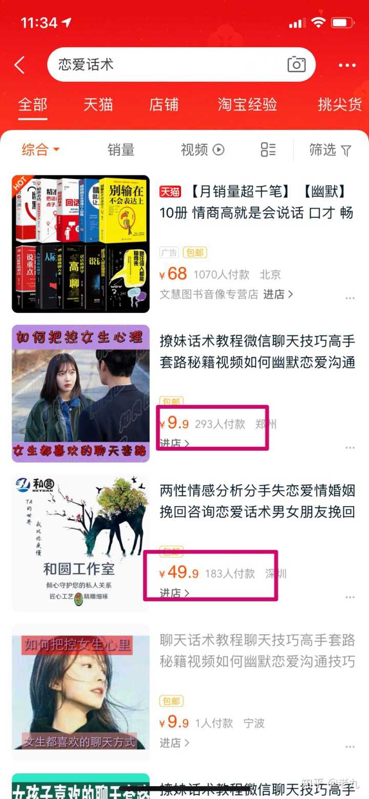 二、把妹教学。某宝有卖这种把妹教学话术的,10块钱就可以买到100G的教学内容,文字视频都有。你可以在短视频平台进行营销,99块钱出售,会制作短视频的人一天卖个十份二十份不是问题,一天保底也有1000块钱的收入。