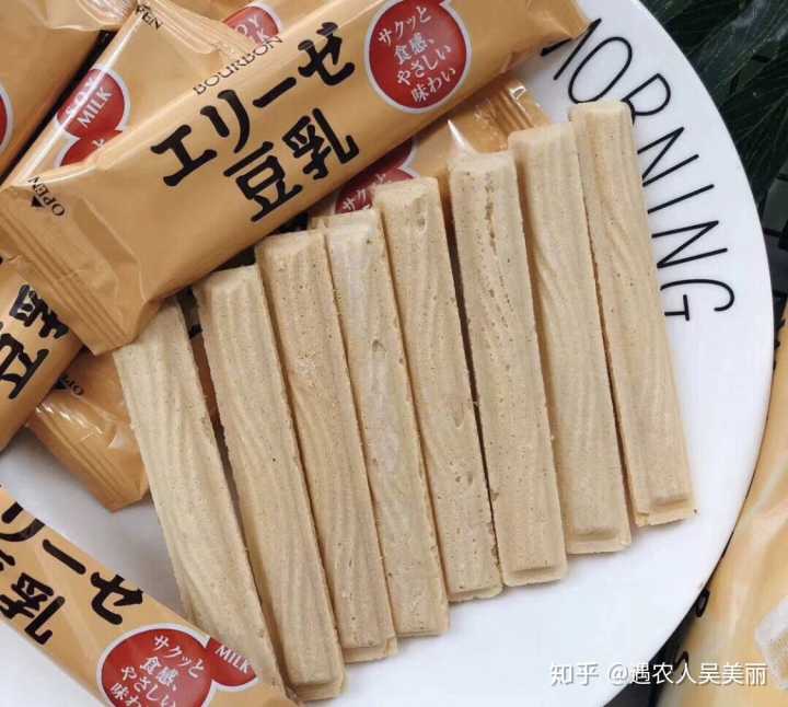 布尔本豆乳威化饼。低脂零食,很酥脆,里面有馅,豆奶味的,吃多也不腻人。小袋装的吃起来很方便也很卫生。这个牌子还有另一种是千层饼装的,也很好吃。