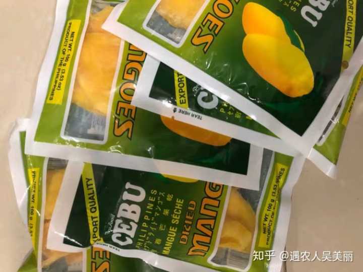 芒果干。两种芒果我是换着买的,都很好吃。一个小份包装,一个大包装,适合不同场合下的食用。宿雾牌不用多说啦,很有名的。另外一个忘记牌子了,直接搜菲律宾芒果干就出来了,手工作的,参照下图的包装喔,有些店铺是挂羊头卖狗肉的,具体要多参考买家秀和评价。