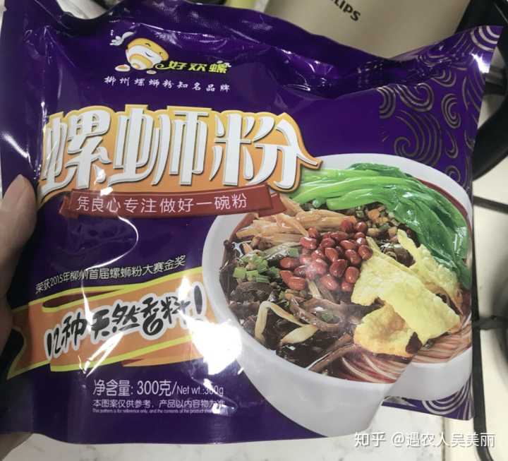 好欢螺螺蛳粉。味道很正宗,吃来吃去还是吃这款。有两种规格的,紫色的是400g,黄色的是300g,看个人食量入。最爱里面的笋包和腐竹,很新鲜。