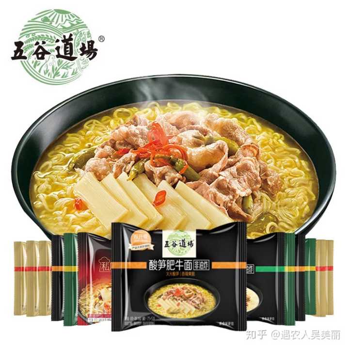 五谷道场。这个牌子的泡面主打非油炸,经典款有好多,我最爱的一款是酸汤肥牛面。酸辣酸辣,辣是吃辣小白也可以接受的,主要还是酸,特别开胃,里面有一块牛肉片,一包酸笋、调料。酸笋真的很好吃,汤很好喝,不知道吃什么的时候我会优先选择它,很开胃。它的面很劲道,不容易泡烂也不容易煮烂。速食爱好者必入!