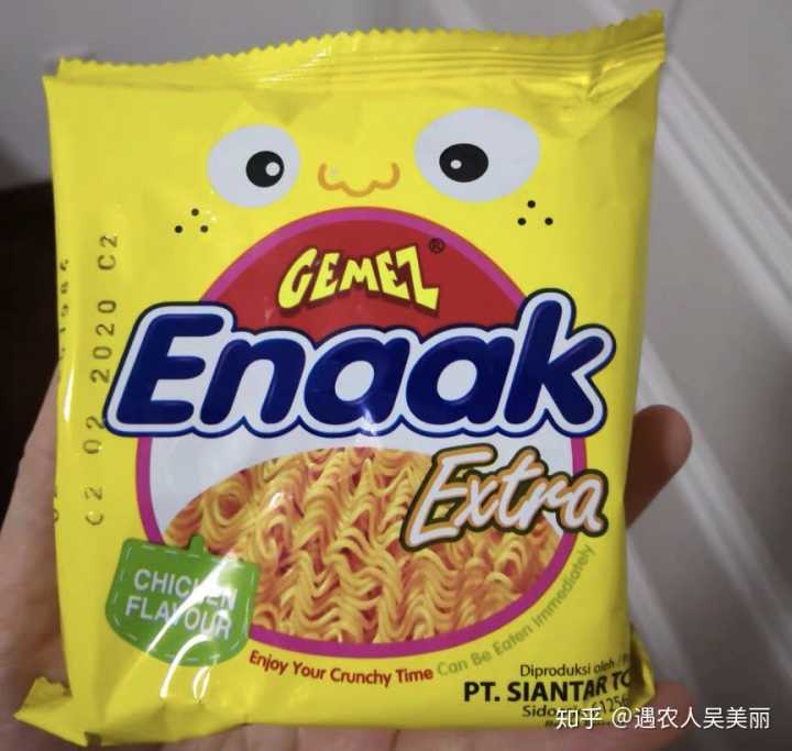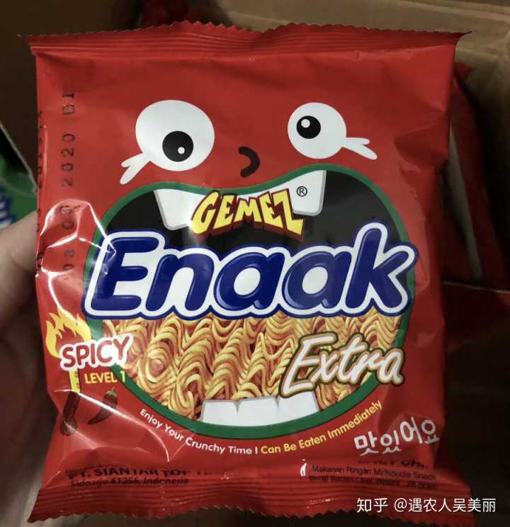 印尼进口小鸡干脆面。因为工作性质,需要经常加班,肚子容易饿,我一般喜欢囤一些干脆面在办公室。它是独立小包装的,食用起来非常方便,这个也是胡乱入的,没想到还挺好吃的,脆脆的。有两种口味:香辣味和烤鸡味。先说说香辣味,开始吃不觉得辣,后劲很足,建议不能吃辣的宝宝慎入哈哈,喜欢辣的放心入。烤鸡味有点鸡油饭的味道,也很好吃。