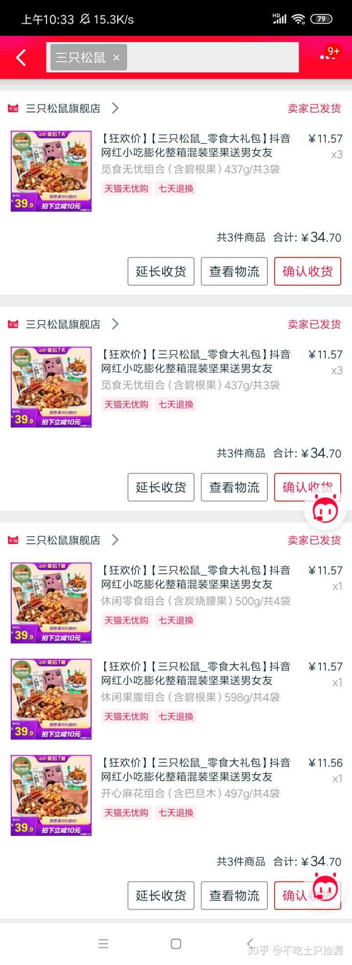 淘宝网购美食,那肯定是三只松鼠呀,便宜又好吃,11块钱就可以买到一箱了~618的时候,趁着漏洞价,一下子下了3单~嘻嘻(♡˙︶˙♡)
