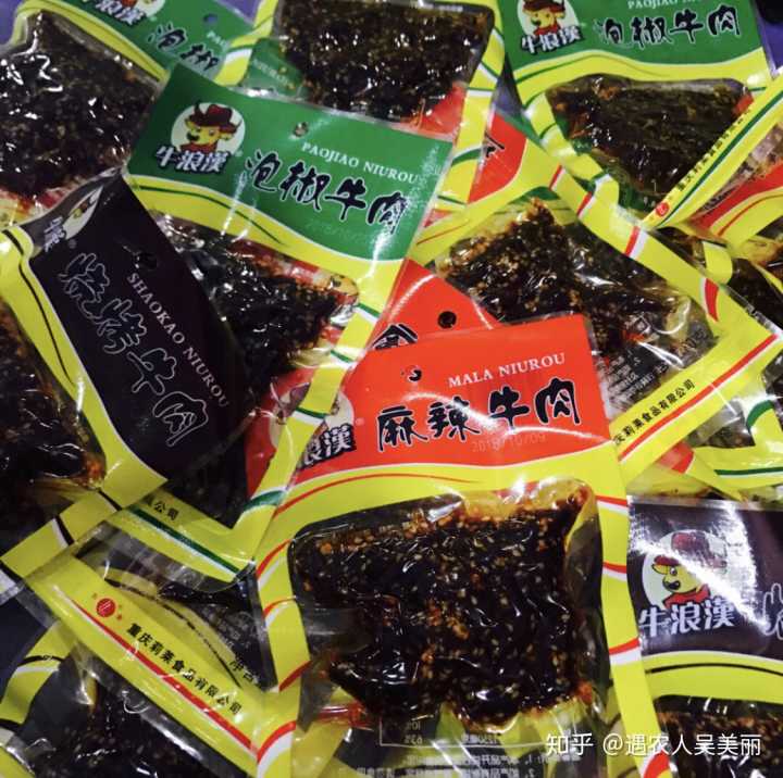麻辣牛肉干。推荐牛浪汉和蜀道香。这两个牌子的肉干都很有水分,很新鲜,咬起来很有嚼劲,不会咬不烂。