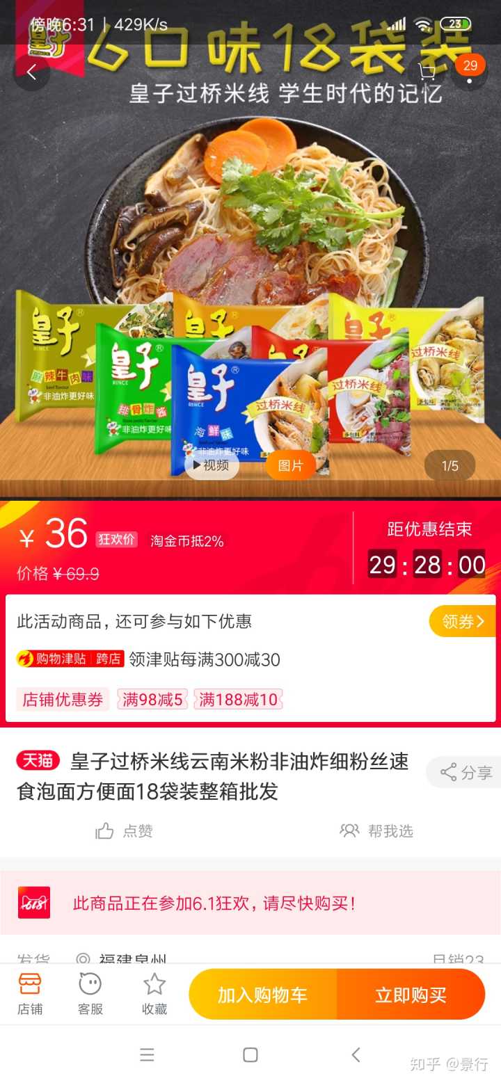 17.色彩生活馆 豫竹香辣牛肉方便面 38元/40包