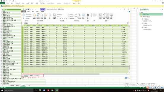 之后,直接用PowerPivot的数据透视表功能,而不用Excel默认的数据透视表。当然,从样式上来看,是一样的,但是这里的3个表格之间已经进行了关联。从这里开始,跟之前的Excel数据透视表的操作没什么两样了。