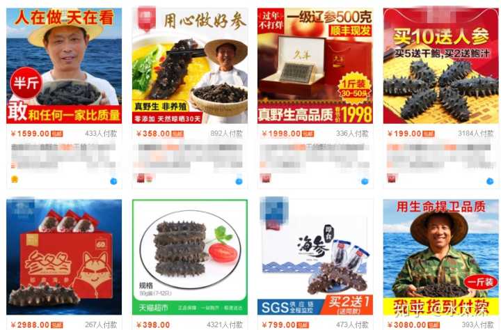 你们随手打开淘宝搜“海参”,大概是这个感觉的。