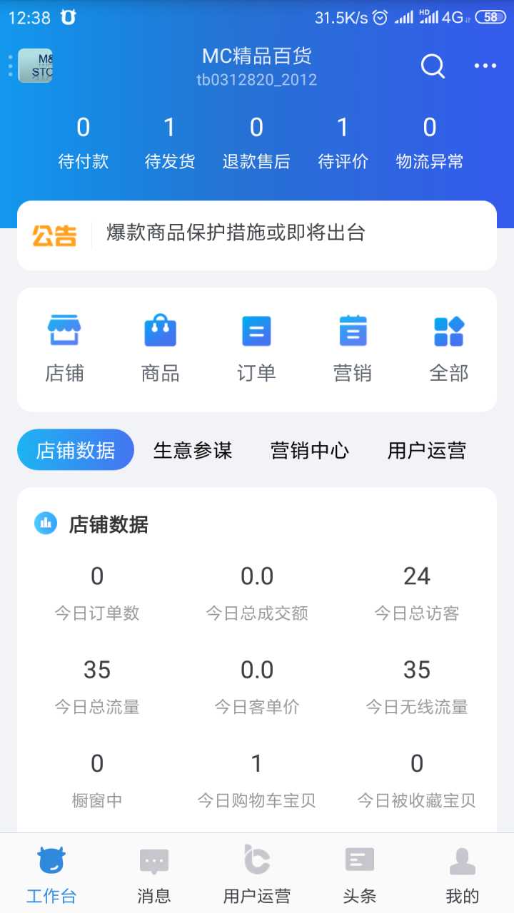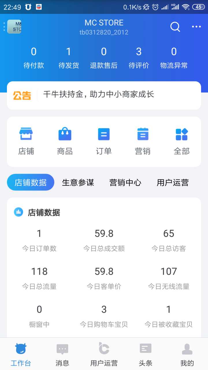兼职开店两个半月了,一件代发,主营百货,目前三个心心,每天看后台数据,心情好的时候选选货源上上新,订单少,也还好。