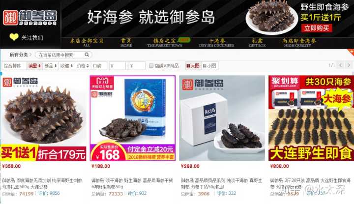 08年,是改变我人生的一年,开始做起了海参。竞争少,受众广泛,固定的款式品类不需要频繁的更换,操作简单,利润还很高,同样的付出,收入翻番,我第一个一百万就是从海参赚到的。所以我一直认为,一个正确人生方向的选择,是要远大于后天努力的。