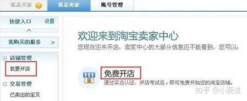 进入“卖家中心”页面,点击“我要开店”或“免费开店”,即可开始开店认证,开店认证包括支付宝实名认证及上传真实个人照片(身份信息认证)两部分。