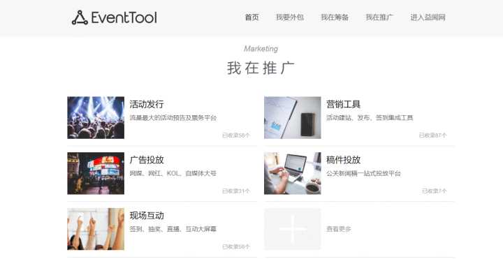 在这里分享个人常用的活动执行工具网址导航eventtool.cc,比较小众,但收录了上述每个环节的效率工具。有两个大类分类,分为筹备和推广两大部分,大概10个环节。