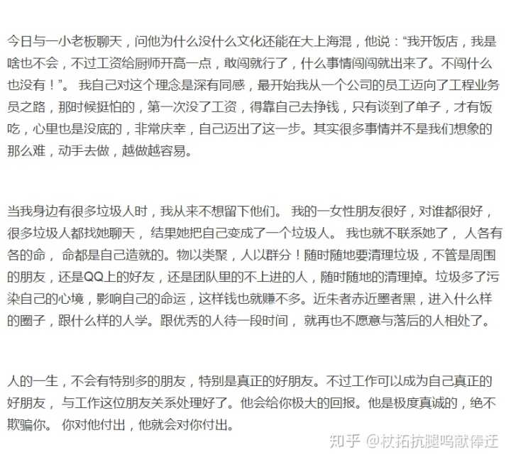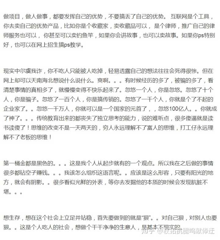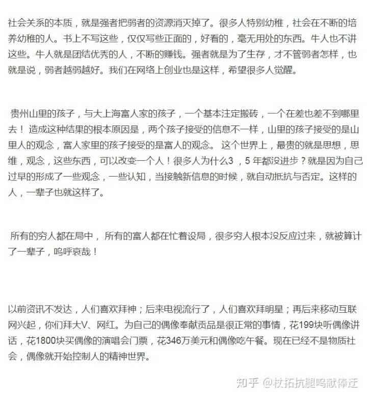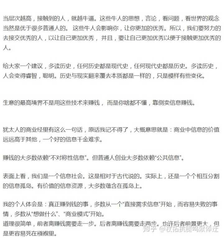 这个道理很简单,就是说你一无所有的时候,你要学会去给有资源的人卖苦力+智力。然后有资源的人就会分你点钱。