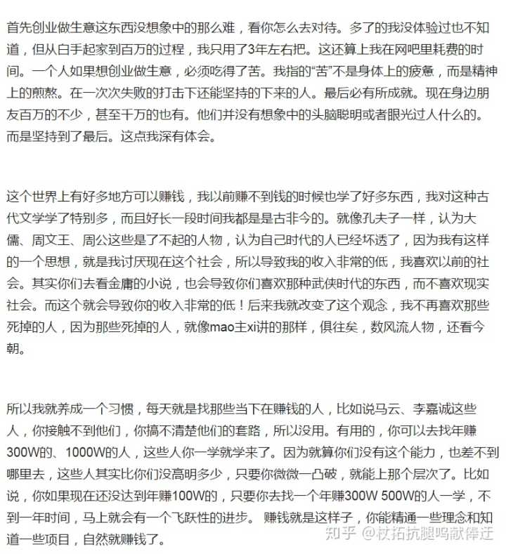 平凡的人,一开始赚钱,就必须靠自己的能力,亲自干活积累资源,既然这样,必然很辛苦。