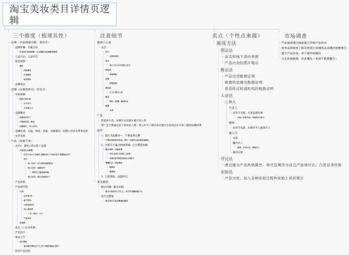 下面这张脑图是我曾经做过100多个详情页调查后写的脑图。