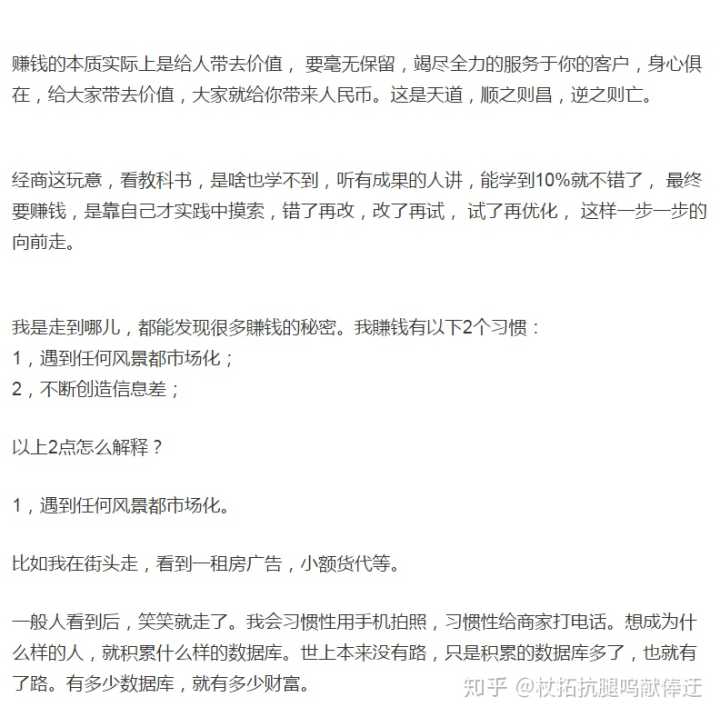 在这个过程中,你不断的积累金钱和各种隐性的资源。比如做这个生意的技巧,做这个生意的人脉,甚至做这个生意的团队。