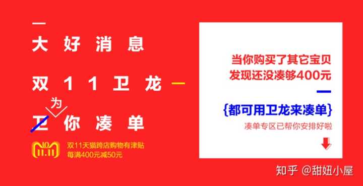 页面做的也是极其的凑单味,主kv就写着“大好消息,卫龙双十一为你凑单”