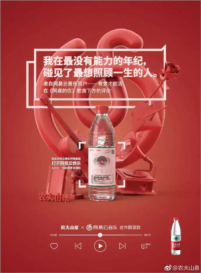 不过,网易并没有放弃利用乐评这一特有的资源。2017 年 8 月 7 日,网易云音乐又与农夫山泉联合推出限量款“乐瓶” ,精选 30 条用户乐评,印制在 4 亿瓶农夫山泉饮用天然水瓶身,在全国 69 个城市首发,京东同步联合发售。