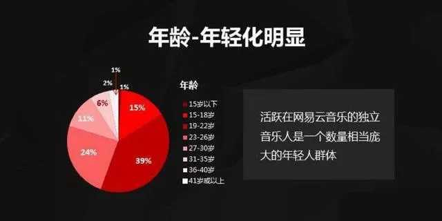 根据网易云音乐此前发布的《中国独立音乐人生存现状报告》显示,19-22岁独立音乐人在平台音乐人中所占比例将近 4 成。而数据显示,截止 2017 年底,网易云音乐上入驻的音乐人就超过了 5 万人,上传原创作品数量超过 100 万首,同比增长超 100%。