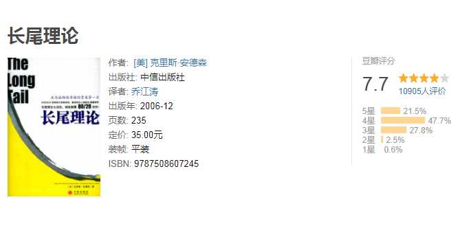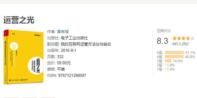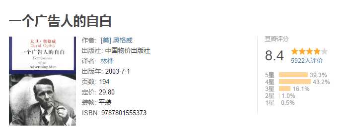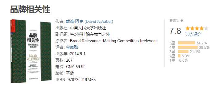 《定位》本书提出了被称为“有史以来对美国营销影响最大的观念”——定位,改观了人类“满足需求”的旧有营销认识,开创了“胜出竞争”的营销之道。(这是我读过最差的一本书,部分内容译得很生硬、甚至前后矛盾,读起来让人皱眉头,最后几章个人定位的部分值得推荐)